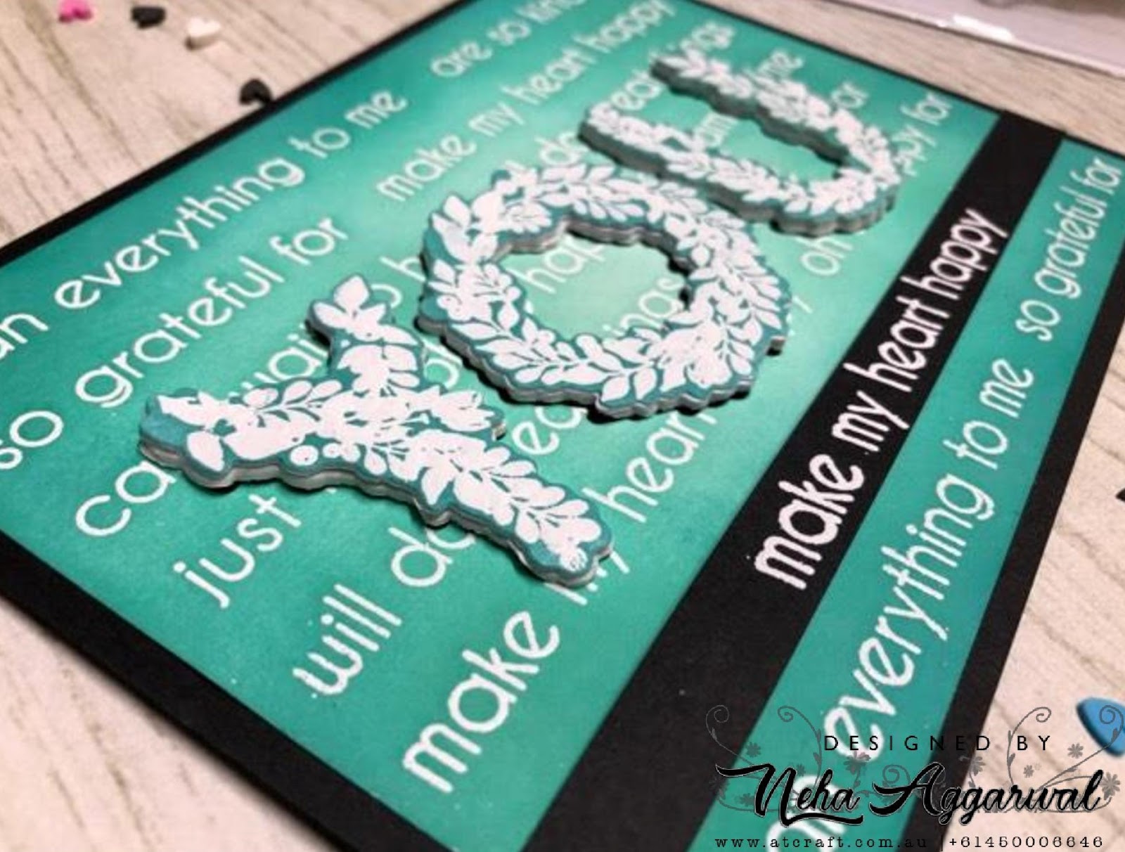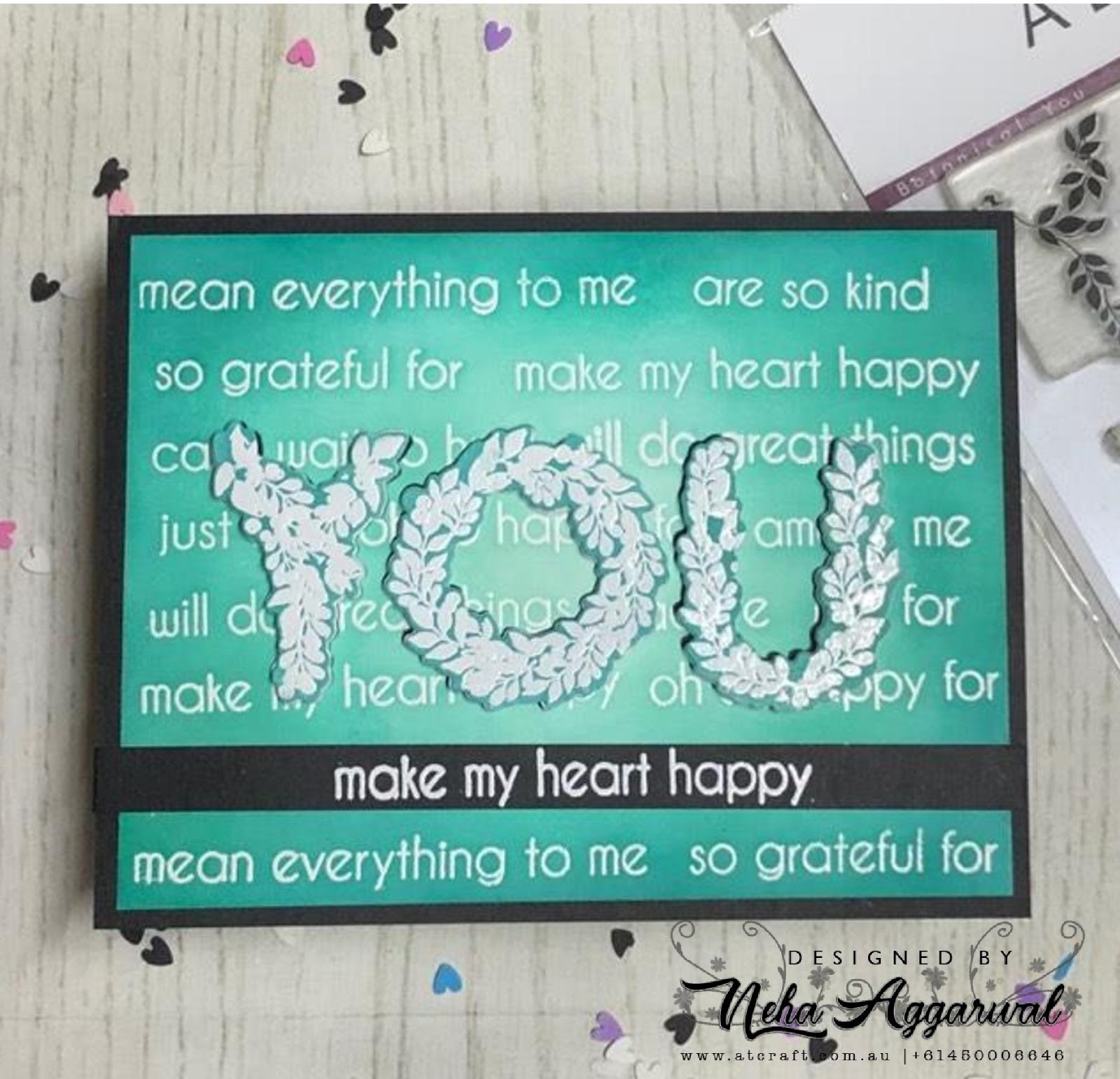 After completing I die cut out my word 'You' from the base base cardstock as well as the leafy YOU with the help of the coordinating dies. I mounted the leafy YOU with the foam to give extra dimensions so that they look like popped out from the base.