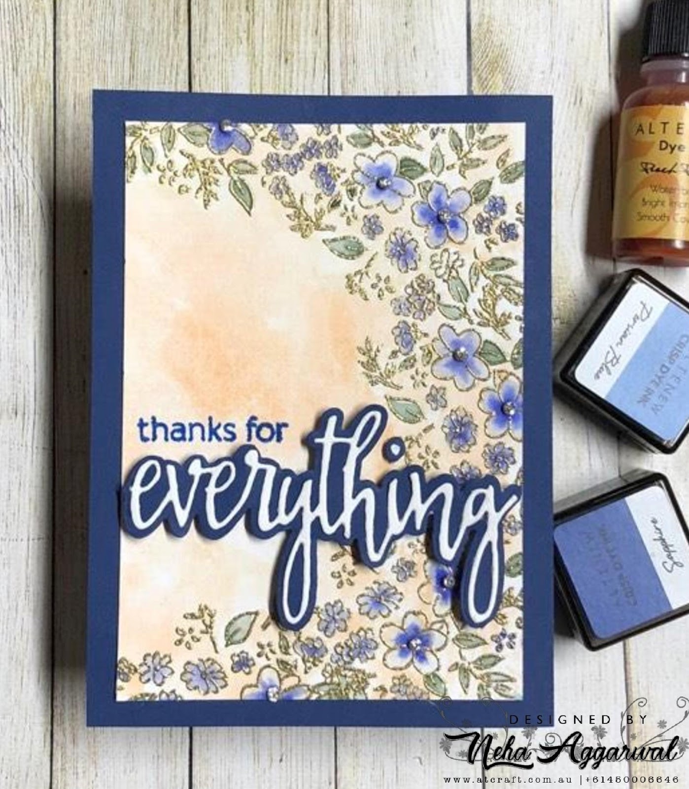 So here I am with my Card where I have used Canson watercolor Paper , Peach perfect re-inker for my background and flowers from Altenew Disty Print Stamp. Images are colored using ink pads and water brush pen.