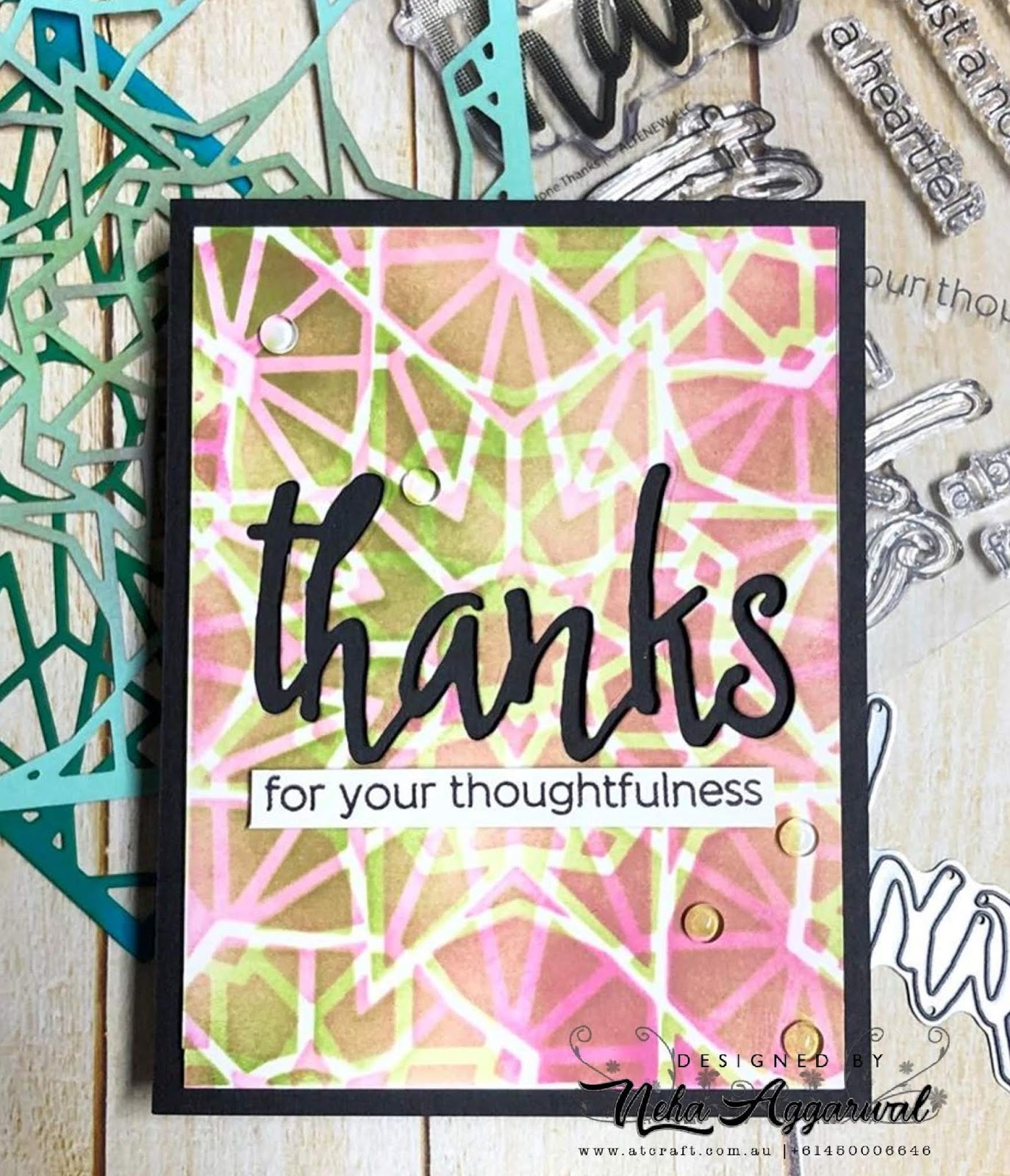 - Once I was happy with the results I then positioned my dies “Thanks” on the center of the card stock and die cut it out.