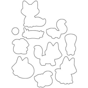 The Clearly Besotted "Forest Friend" Die is a coordinating die set designed to pair with the "Forest Friends" stamp set. This collection features charming woodland creatures such as foxes and skunks, along with elements like tree trunks and flowers, making it ideal for crafting nature-themed cards and projects.