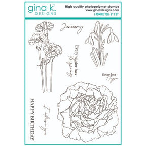 I Admire You Stamp Set is a stamp set by artist Hannah Drapinski. This set is made of premium clear photopolymer and measures 6" X 8".Â