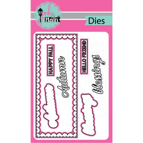 This is a set of 7 dies for the popular slim line cards. The large die cuts a inner-scallop frame that is 8.5 x 3.5 inches. There is also the words 'Autumn blessings' with shadow dies, and two framed sentiment dies.