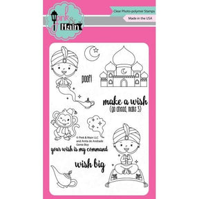 Pink and Main Clear Stamps 4 inch X6 inch Genie Boy - Here is a fun 4x6 inch stamp set to make all your wishes come true! Well, at least we can make fun cards and other projects about our wishes coming true with the cute Genie Boy. There is a coordinating die set for these stamps.