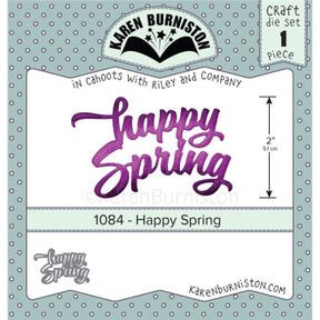 This stand-alone Craft die, Happy Spring is from Karen Burniston in cahoots with Riley and Company. This die set features the phrase happy Spring in a script font. This die is compatible with leading die cutting machines (sold separately). This die can be used on cards, scrapbook pages, tags, and other paper crafting projects. This sentiment measures 2" in height.