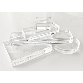 Comfort Blocks by Gina K. Designs are softly curved, lighter weight acrylic blocks. They are comfortable to hold in your hands with no sharp edges. The extra lightweight acrylic with laser-etched gridlines allow for easy positioning and the sizes are perfect for both greetings and image style stamps. They come in a convenient plastic storage box. Clean with mild soap and water. These blocks have been manufactured to our specifications and are the perfect complement to your stamp positioning tool.