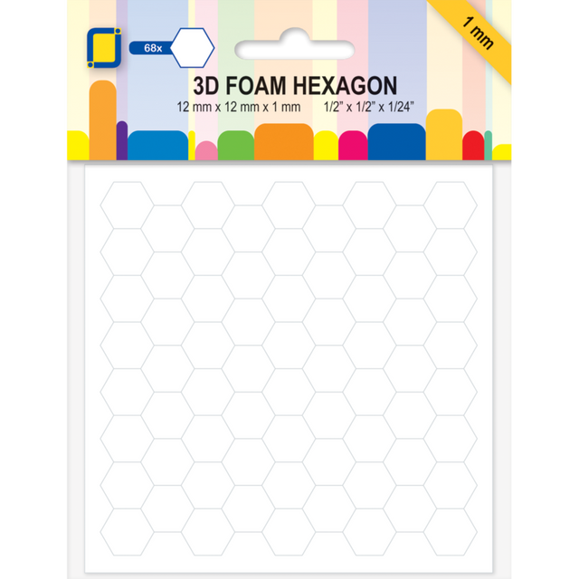 3D Foam Hexagon 12mm x 12mm x 1mm. Double-sided adhesive 3D Foam Hexagon is used for many applications like: 3D decoupage cards, paintings and shaker cards, but is also very suitable for sticking materials on irregular and rough surfaces. Fast and easy to use. Size: 12mm x 12mm x1mm.