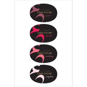 4 full-size Altenew dye inks. Water-based. Smooth coverage. Vibrant Impression. Our fast-drying dye inks will give you uniform coverage and a crisp impression every single time. They are excellent for water-based techniques and perfectly complement our clear photopolymer stamps. Colors Included: Grapevine Ruby Red Coral Berry Frosty Pink