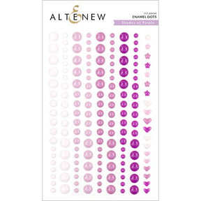 These adhesive enamel dots coordinate with Altenew Shades of Purple Ink set and will be the perfect embellishment to accent your paper crafted projects! They feature versatile dots, as well as fun heart and star shapes in Soft Lilac, Lavender Fields, Deep Iris, and Midnight Violet colors.