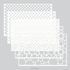 The extra-large 6x9 size of the Dots on Dots Stencils lets you ink up two A2 card fronts at once for quick and efficient crafting. Just cut them apart! Includes 5 dot patterns. 6x9. 5 pieces