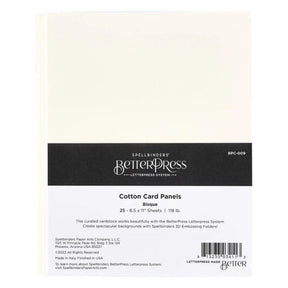 Bisque BetterPress Cotton 8.5 x 11” Sheets comes in a pack of 25 sheets in a natural white color. This curated 118lb. cardstock works beautifully with the BetterPress Letterpress System. In addition, use with Spellbinders’ 3D Embossing Folders to make spectacular sculpted background designs.