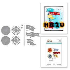 Classic Mouse Flags & Banners Etched Dies is from the Say Cheese Classic Mouse Collection and comes with 13 dies to create gorgeous layered rosettes and curling flags that read 'The Best Day Ever'. The rosettes are designed to perfectly fit the letters and numbers from S5-703 Alphabet, S4-1469 Numbers & Punctuation to make richly layered titles for your scrapbook pages or cards. Channel classic fun and vintage charm with this set, perfect for using with the rest of dies in the collection... or other elements from your stash!