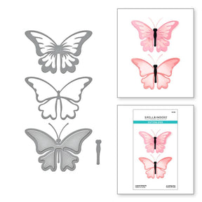 Layered Butterflies Etched Dies is a set of four thin metal dies that stack together to create a stunning butterfly. Cut every layer in a different hue for a colorful effect, or try a sweet tone-on tone look perfect for any occasion. Create a wing base out of patterned paper for extra wow! You'll be reaching for this versatile- and adorable!- butterfly again and again.