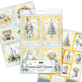 The Fairy Tale Christmas Die-Cut Toppers are beautifully foiled in decadent gold and feature a variety of stunning seasonal images, including Nutcrackers, jolly Santas, wreaths, stockings, Christmas trees and more, all in a pleasing palette of blue & gold.