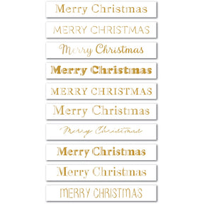 Memory Box ST034 Merry Christmas Foil Greetings Large White Tabs