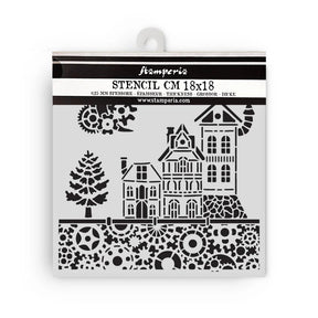 Stamperia Gear up for Christmas Thick Stencil 18x18cm Houses (KSTDQ129)