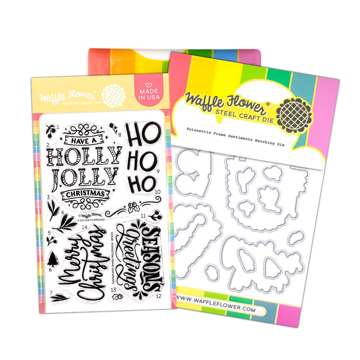 Waffle Flower Crafts Poinsettia Frame Sentiments Combo