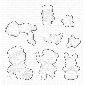 This die set coordinates with the Abracadabra stamp set for perfectly die-cut images. The dies are open inside to allow you to stamp then cut, or cut then stamp. This feature also allows for easier removal of the die cuts.