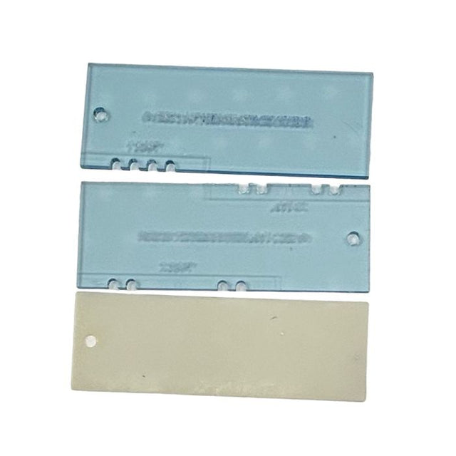 Set of two acrylic guides - one has angled corners to create accurate tag toppers plus mylar strip.