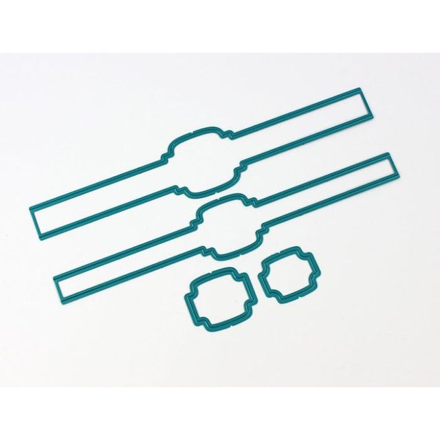 Designed to create decorative belly bands for all your papercraft projects- albums, journals, cards, home decor etc. the bands have no cutting ends, enabling the band to be made as long as you choose. The dies are designed to mat and layer.