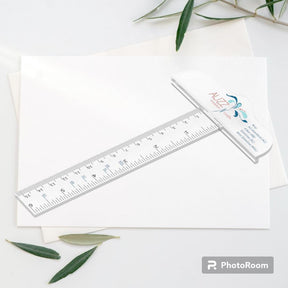 T-square rulers are a must-have for crafters, 6 inch T-Square Ruler is the ultimate card makers tool! Its 6 inch size makes it easy to manage and use while crafting. The ruler itself contains measurements in both Imperial and metric. You'll also notice the handy key that is included; all of the most common card sizes are marked for easy reference!