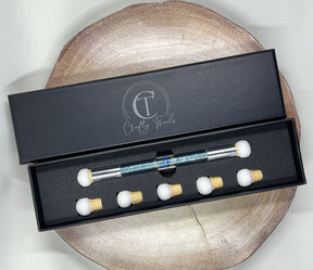 The Box includes 1 stick with 2 tips and 5 replacement tips. After inking your work, all you need to do is remove the dauber tips and wash with lukewarm water, mild soap, allow to dry and they will be ready for the next use.
