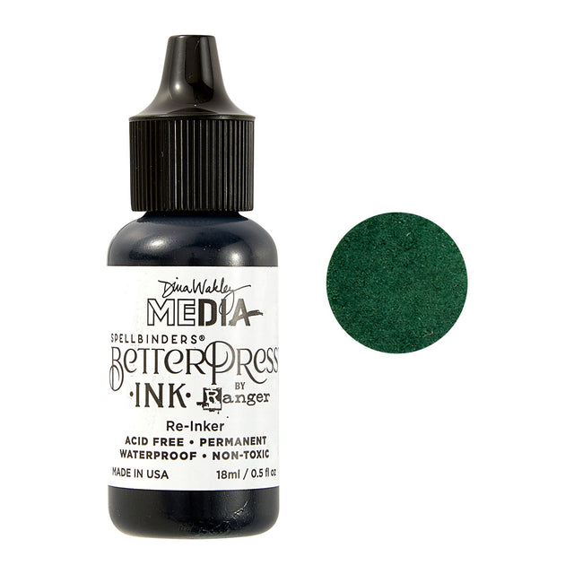Extend the life of your Fir BetterPress ink pad from the Festive BetterPress Ink Mini Set by Dina Wakley with the Fir BetterPress Reinker. Simply add a few drops of the Reinker onto the pad and spread it evenly. Now you’re back to creating with the BetterPress Letterpress System for those stunning impressions!