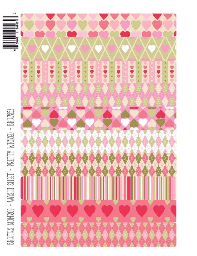 Add a splash of retro charm to your papercrafting with the Pretty Wicked Washi Sheet! Featuring two 8.5"x11" sheets filled with ten strips each, these vintage-inspired pink and green washi tapes bring playful nostalgia to every project. Perfect for scrapbooking, cardmaking, or decorating planners, these throwback patterns make your crafts wickedly fun and uniquely stylish.