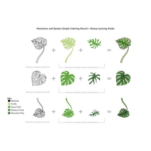 Want to add some encouraging monstera leaves to your next project? With this handy simple coloring stencil set, you can easily color the layers of the three monstera images included in the coordinating stamp set. Alternatively, create a stunning no-line tropical leaf look with the stencils alone.