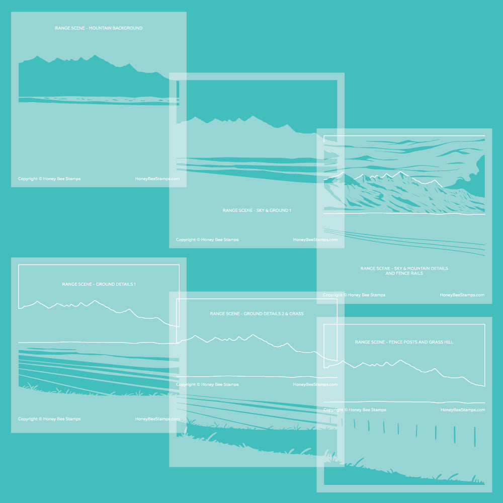 Honey Bee Stamps Range Scene - 6"x6" Set of 6 Layering Stencils