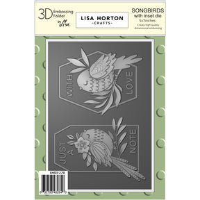 Lisa Horton Crafts Songbirds Embossing Folder and Die Set adds sweet, dimensional bird designs to your cards and projects with crisp, detailed 3D texture. The folder creates beautifully sculpted songbirds surrounded by leafy accents and sentiments, while the included inset die lets you cut out the embossed shapes for layered focal points. Ideal for cardmaking, tags, and mixed-media pieces, this set delivers charming, high-impact results with ease.Package dimensions: 5.7 in x 0.2 in x 9.3 in (14.48 cm x 0.51 cm x 23.62 cm).