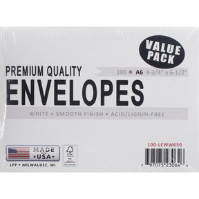 Leader A6 Envelopes (4.75"X6.5") 100/Pkg White