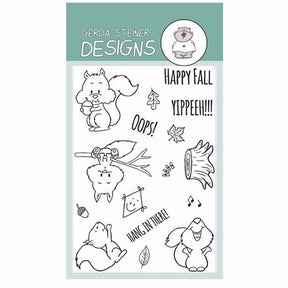 These cute Squirrel Clear Stamps give you lots of possibilities to create lots of Fall scenes and also everyday cards. The sentiments match perfectly and the ideas are endless. Make the squirrel sing with the music notes or he canthrow some leaves and squeal YIPEEH ...