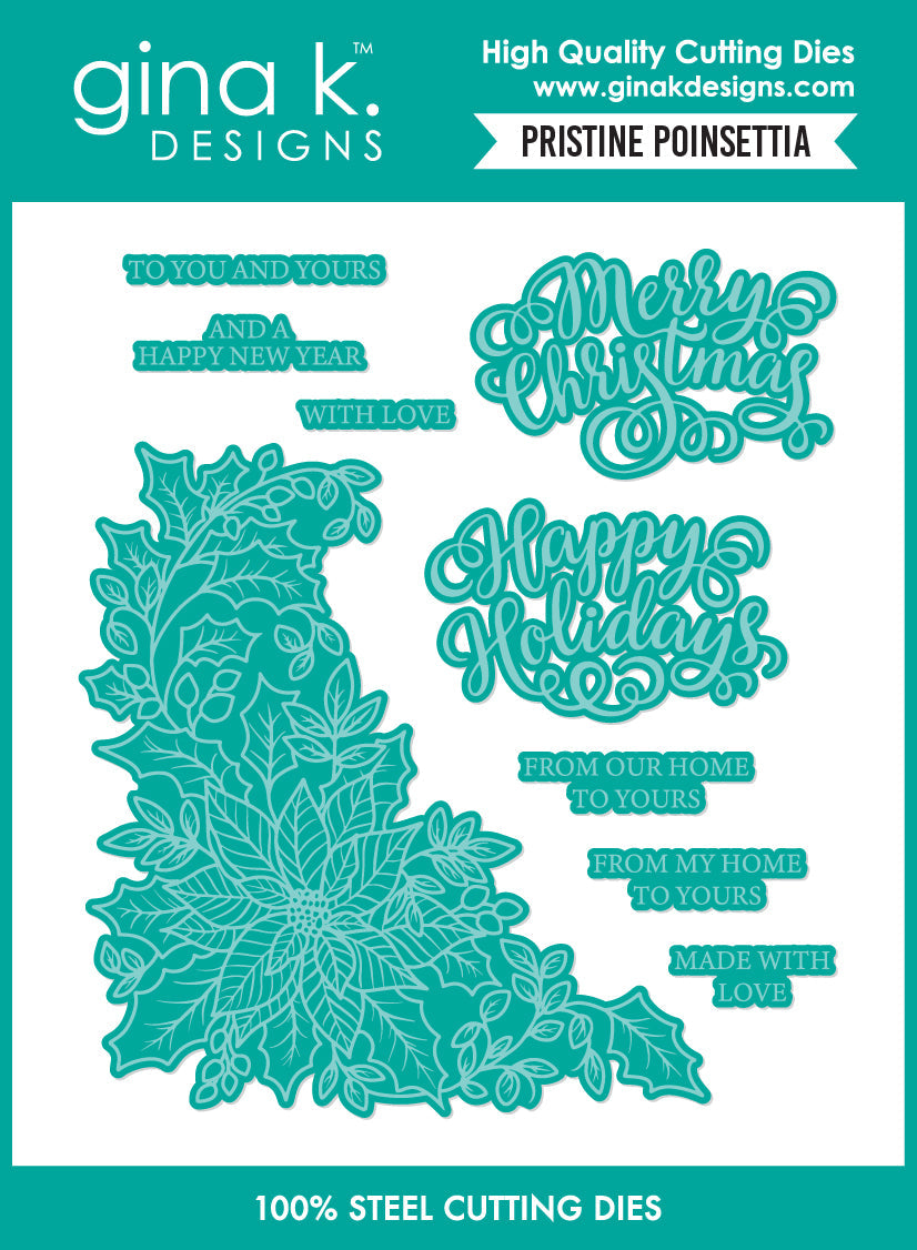 Pristine Poinsettia is a stamp set by Gina K Designs. This set is made of premium clear photopolymer and measures 6" X 8". Made in the USA