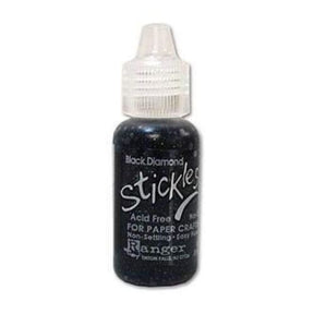 RANGER-Stickles. A plastic bottle of 0.5oz/15ml of glitter glue. Acid free, non-toxic, Non-setting and featuring an easy flow tip. Makes your art sparkle and enhances rubber stamped designs, adds excitement to greeting cards, letters, envelopes, holiday and party decorations. Many colors available. Conforms to ASTM D4236. Made in USA.