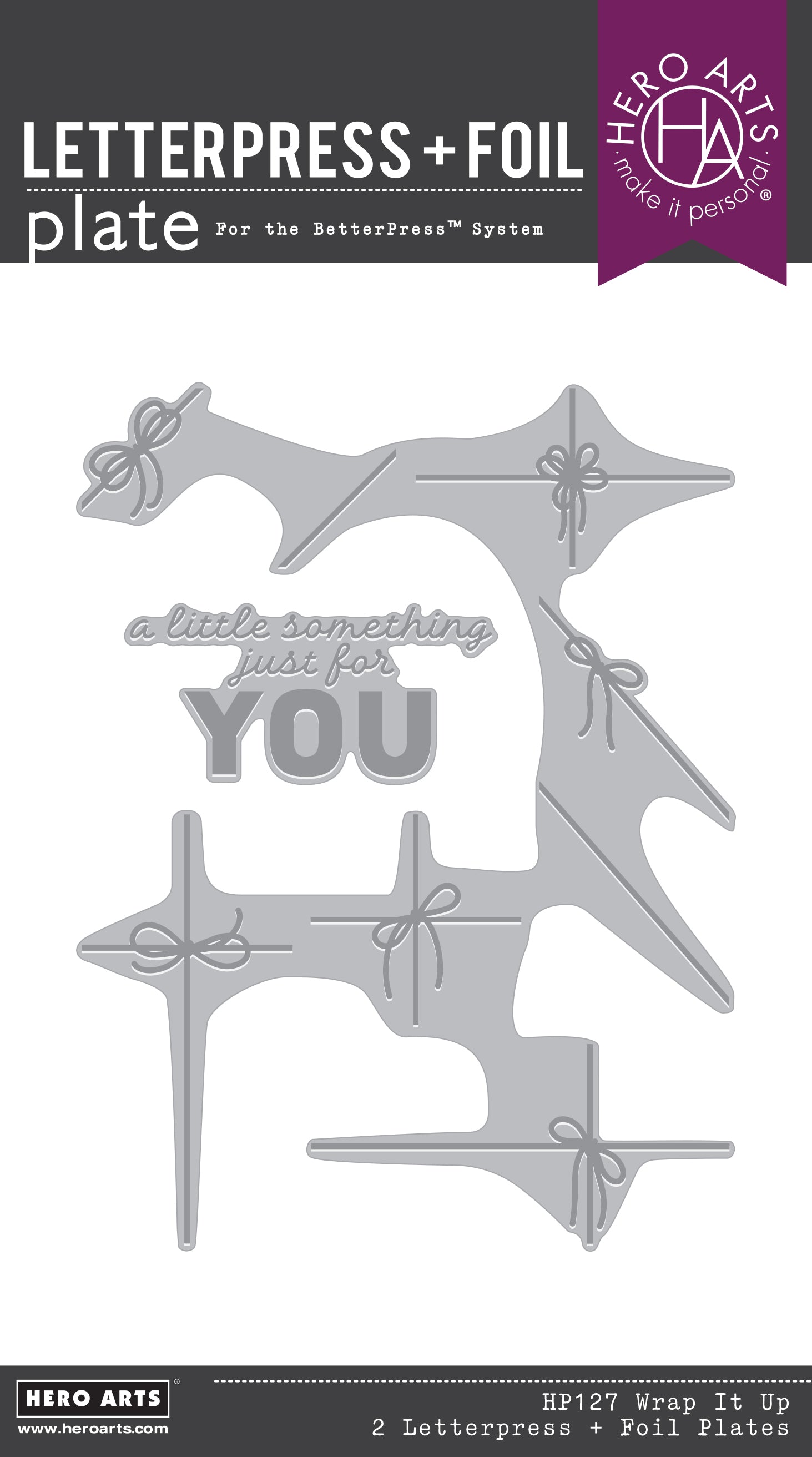 Hero Arts Wrap it Up Letterpress + Foil Plates with Placement Guide from the Best Gift Ever Collection