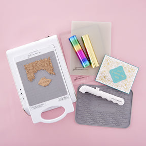 The Glimmer Hot Foil System is designed to be used with the Spellbinders® Platinum™ and Platinum 6™ Die Cutting Machines. It can also be used with the Big Shot™ and select manual die cutting machines.