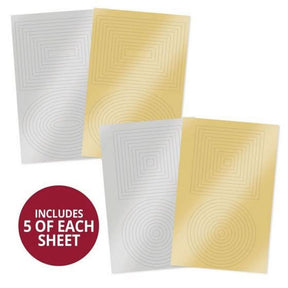 Make your card designs stand out with a luxurious pop of reflective shine with our Essential Die-Cut Nested Mirri Frames. Included is 20 sheets of the highest quality die-cut 220gsm Mirri frames in our signature Gold and Silver colours with a selection of concentric circle, square, oval & rectangle shaped frames which offer a variety of sizes. Simply remove your chosen frame from the sheet and create your own Mirri framed apertures that will add a special finish to photos, pyramage, toppers, stamped images and sentiments, die-cuts and much more! They are the perfect accompaniment to Hunkydory’s fan-favourite range of Little Books, tailor-made to fit. The pack contains 360 individual frames plus 40 mini mats!