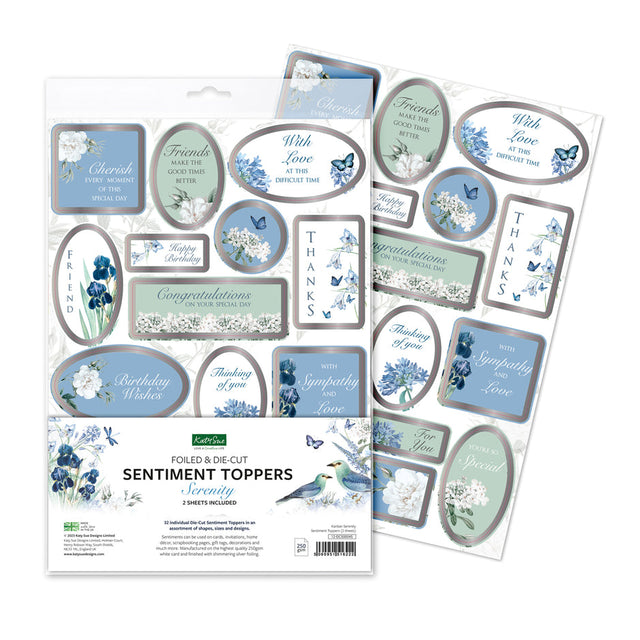 Katy Sue Serenity Foiled Sentiment Toppers, 2 sheets