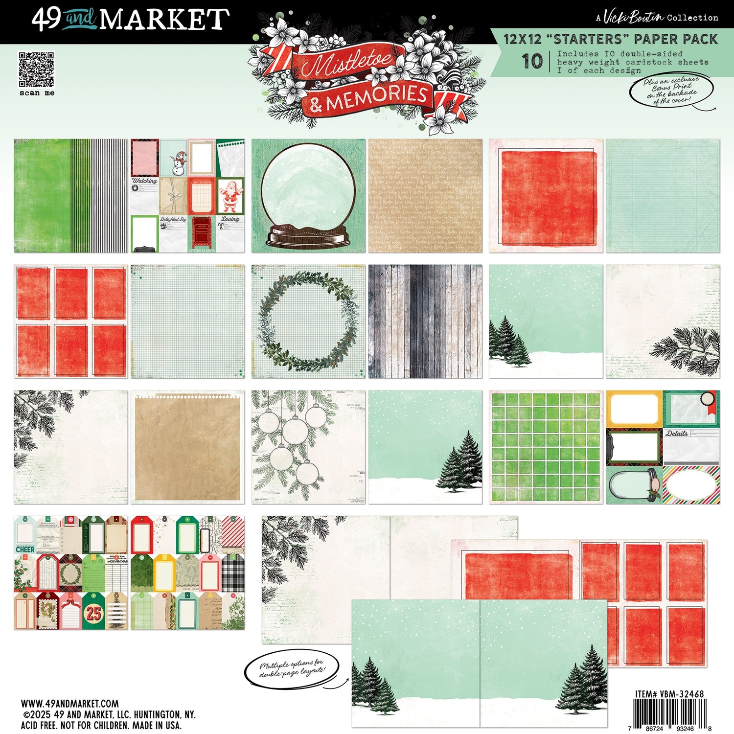 Unwrap the magic of the season with Vicki Boutin's Mistletoe and Memories collection, where an eclectic and captivating new mix breathes fresh life into the traditional spirit of the holidays. This collection masterfully blends classic festive motifs with Vicki's signature artistic flair, offering a unique palette and inspiring designs that feel both wonderfully nostalgic and vibrantly contemporary. Dive into a world where timeless holiday sentiments meet unexpected details, perfect for documenting cherished moments and creating unforgettable seasonal crafts. Pack includes one each of 10 double-sided sheets of heavy weight cardstock.