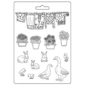 Silicone molds from Stamperia. The base keeps the mold suspended and perfectly level, making it easy to use with liquid products like the Crystal Resin or liquid Gesso. Ideal for Soap, Ceramic Powder, White Resin and for all products to be molded by pressure or to be cold-cast. This package contains Stamperia Soft Maxi Mould A5 Sunflower Art Farm, one mold, 13 designs. Imported.