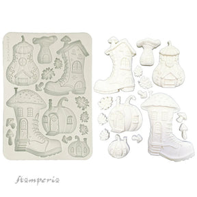 Stamperia Whispering Woods A5 Soft Mould Boots and Pumpikin House (KACMA586)