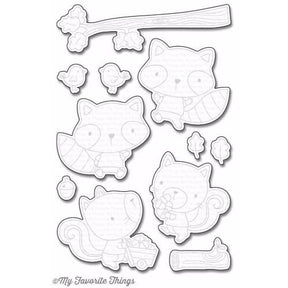 The 11 piece Harvest Buddies Die-namics includes: Raccoons (2) 2 x 1 3/4, 2 x 1 7/8, Squirrels (2) 2 1/4 x 1 3/4, 1 3/4 x 1 7/8, Tree limb 3 3/4 x 1 1/8, Birds (2) 3/4 x 11/16, 11/16 x 5/8, Leaves (2) 1/2 x 5/8, 3/8 x 5/8, Log 1 5/16 x 11/16, and Nut 7/16 x 1/2.