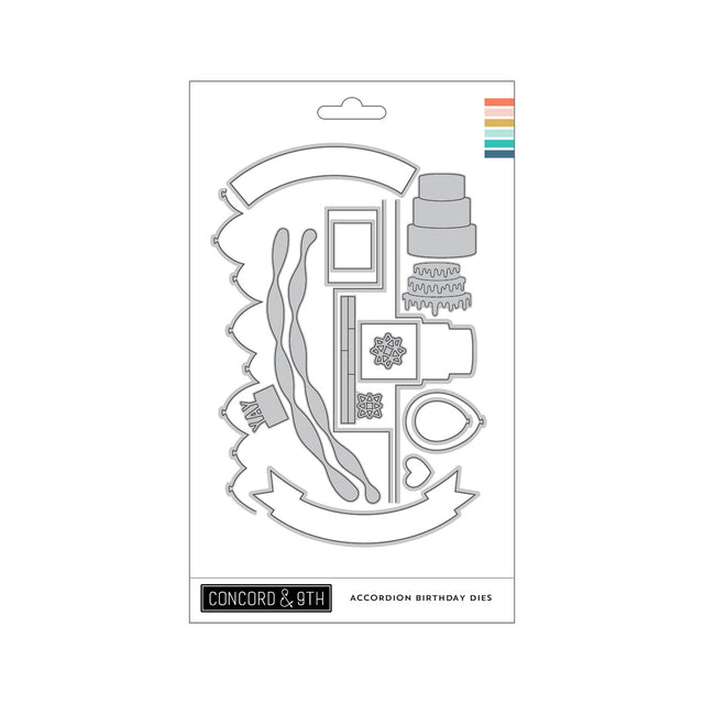 Birthdays are about to get a whole lot more fun with the Accordion Birthday Dies! This playful set of is packed with everything you need to create festive party scenes, complete with cakes, balloons, streamers, presents, and cheerful banners. Craft the scene on a traditional card base or use our new Accordion Card Base Dies to bring the celebration to life! Coordinates with the Accordion Birthday Stamp Set. 16 pieces.