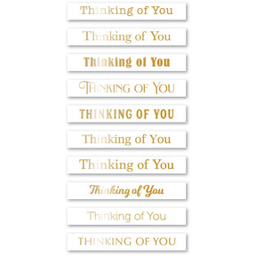 40 White greeting tabs gold foiled "Thinking of You". 4 each of 10 designs.