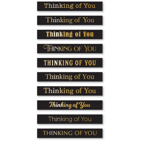40 Black greeting tabs gold foiled "Thinking of You". 4 each of 10 designs.