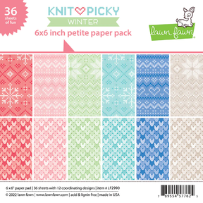 Give your cards and crafts a creative touch with this fun 6x6 pad! This Petite Paper Pack contains 36 sheets and features 12 coordinating patterns from Knit Picky Winter, a collection of knit patterned papers, perfect for your winter themed projects. This collection is a great backdrop for your cards and scrapbook layouts.