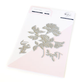 Approximate measurements: Floral stem: 3.7β x 4.8β, Thinking of you: 1.1β x 1.8β, Thank you: 1.3β x 1.6β