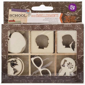 Prima Marketing - School Memories Laser Cut Wood Icons In A Box 36 Pieces 6 Styles Of Embellishments