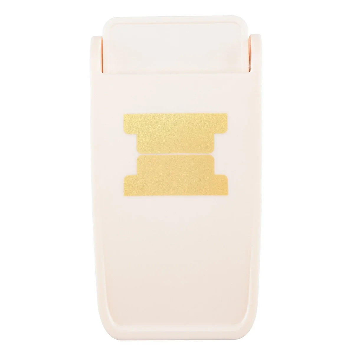 Create tabs for dividers in notebooks, agendas, journals, and scrapbook albums with the heavy-duty Journal Tab punch. You can make both single and double tabs. Insert the material into the punch and press the handle to punch. The result is a perfectly cut tab that you can adhere to your notebook, album, or planner. For a double tab, fold the material, ensuring the fold is perfectly in the middle of the tab. Lock the handle after use to safely store the punch.