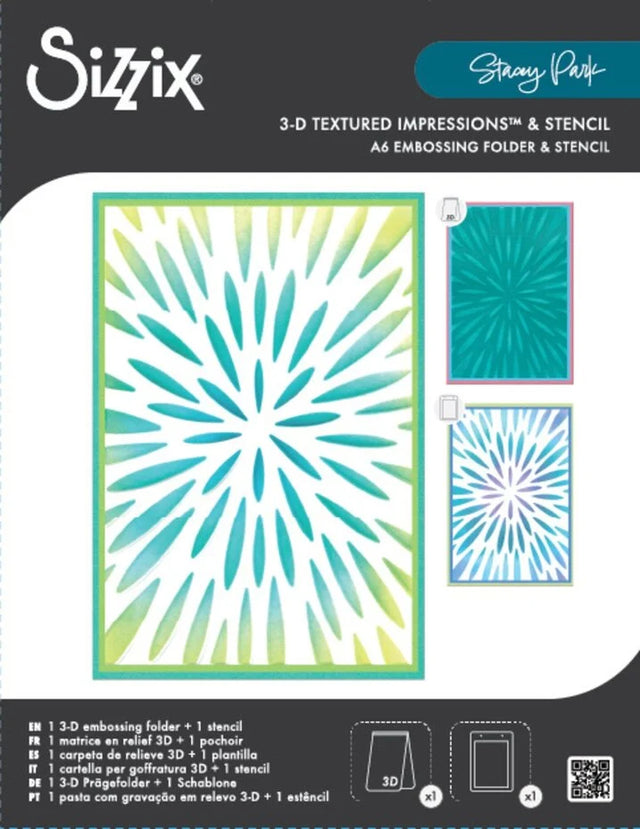 Sizzix 3D Textured Impressions w/ Stencil by Stacey Park A6 Burst of Bright (666892)